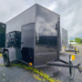 This 5’x8′ black cargo trailer from Discovery Trailers is a good quality basic cargo trailer with a rear ramp door, stab jacks, 6-inch extra height, 9 recessed d-rings, an upgraded 0.080 screwless black aluminum exterior, and interior white vinyl walls.
